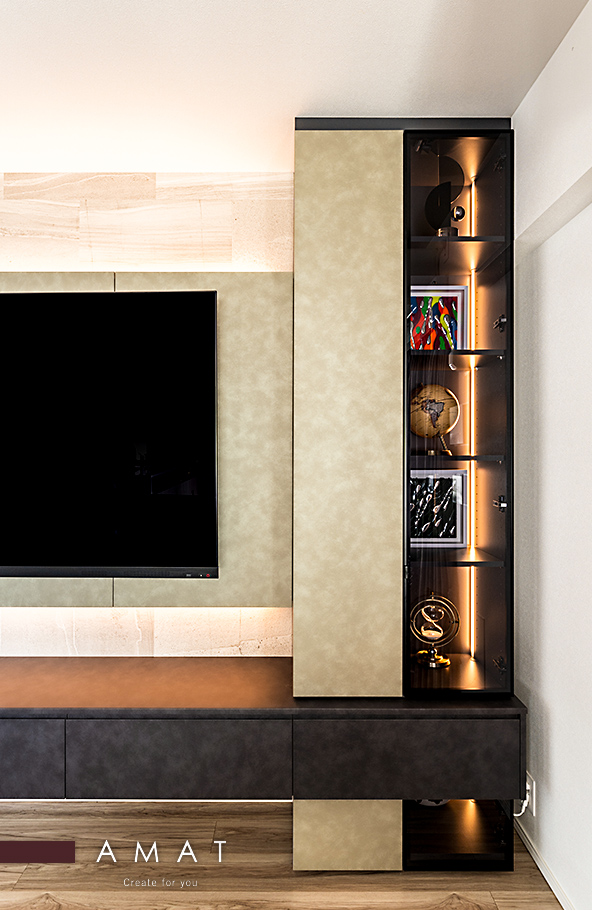 - #ラグジュアリー#ホテルライク#壁掛けテレビ対応#造作テレビボード#テレビボード収納#オーダーテレビボード#オーダーメイド#作り付け家具#造作家具#オーダー家具#AL20#TV#TVボード#お酒棚#インテリア#エコカラット#オシャレ#ガラス扉#テレビ#テレビボード#フロートテレビボード#ストーングレース#飾り棚#バックパネル扉#フロート#ツートン#ライトアップ#ブラック#ライン照明#ベージュ#リビング#収納#黒#多機能#大人#大型テレビ#おしゃれ#放熱セットバック#放熱欠き込み#放熱用開口#カッコイイ#映画鑑賞#キレイ#機能的#コレクション#シック#照明#ダーク#石目#石目調#素材感#モダン#調光式#調光機能付き#賃貸#ライトアップ#趣味#配線#配線受け#配線孔#酒瓶#間接照明#陶器隠す#隠し収納#電球色#飾り棚